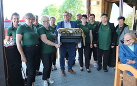 Spotkanie na tarasie przed remizą było też kolejnym spotkaniem z seniorami, zorganizowanym przez KGW z Białej Błotnej w ramach cyklu Danie Wspólnych Chwil z Fundacją Biedronki, w ramach którego dla uczestników „Bielanki” przygotowały przepyszne wypieki, swojskie wędliny i inne kulinarne specjały.