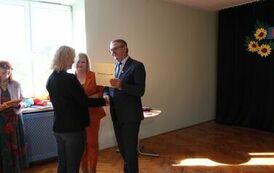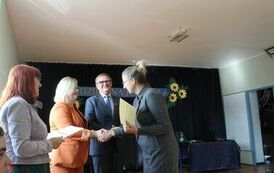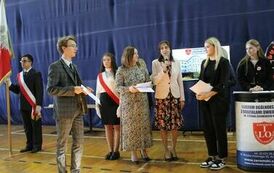 W uroczystości wzięli udział Paweł Sokół Wicestarosta Zawierciański, Tomasz Dzierżanowski Sekretarz Powiatu Zawierciańskiego, Barbara Kozioł Członek Zarządu Powiatu Zawierciańskiego oraz Olga Szczygieł Naczelnik Wydziału Edukacji Starostwa Powiatowego w Zawierciu.