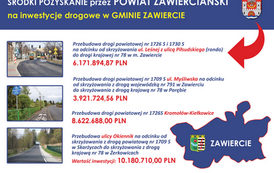 - Dzięki staraniom tu obecnych Parlamentarzystów oraz wsparciu radnych Rady Miejskiej – Miasto Zawiercie otrzymało dofinansowanie z Rządowego Funduszu Polski Ład w wysokości prawie 38 mln zł, z Rządowego Funduszu Inwestycji Lokalnych prawie 10 mln zł oraz Rządowego Funduszu Rozwoju Dróg ok. 2 mln zł. W sumie na inwestycje drogowe Gmina Zawiercie otrzymała wsparcie ok. 11 mln zł, za co również bardzo serdecznie dziękujemy.