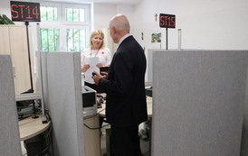- Dzięki słusznym decyzjom Starosty Gabriela Dorsa i Wicestarosty Pawła Sokoła możemy cieszyć się z tej inwestycji. Budynek jest dostosowany do nowoczesnej obsługi petentów, mamy usprawnienia w postaci podjazdu, windy czy klimatyzacji, dzięki czemu jakość obsługi petentów jest inna – jeśli ktoś z Państwa choć raz był w dawnej siedzibie Wydziału na ul. Włodowskiej – wie o czym mówię – dodał Krzysztof Furman. – Dziś pracujemy w nowoczesnych warunkach. Nie bez znaczenia jest lokalizacja – nie każdy do Wydziału Komunikacji przyjeżdża przecież samochodem – np. jeśli ktoś odbiera prawo jazdy, bliskość przystanków autobusowych i dworca PKP ma znaczenie.