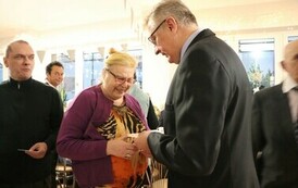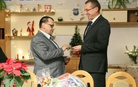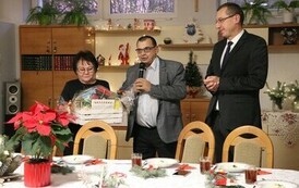 W świątecznej atmosferze Starosta Gabriel Dors oraz Skarbnik Halina Mackiewicz złożyli życzenia dyrektorowi placówki Rafałowi Porcowi, pracownikom oraz mieszkańcom DPS.